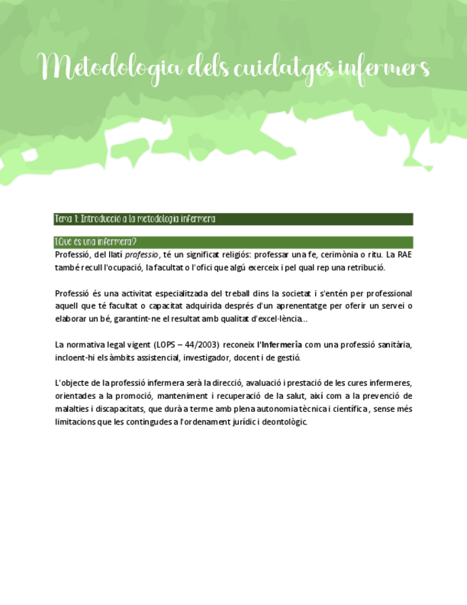 He publicado nuevos apuntes de 1º Metodologia dels cuidatges infermers: Apuntes para examen