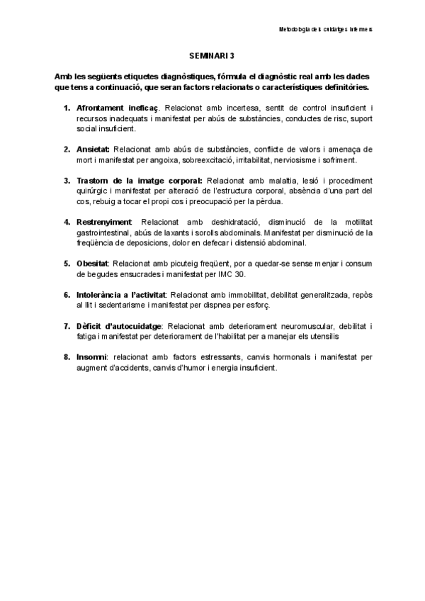 He publicado nuevos ejercicios de 1º Metodologia dels cuidatges infermers: SEMINARIOS