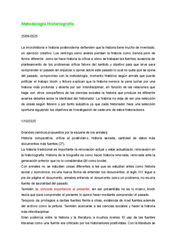 3ºB-Castellano Tardes-Metodología e Historiografía- Nuria Soriano Muñoz (APUNTES EN SUCIO)