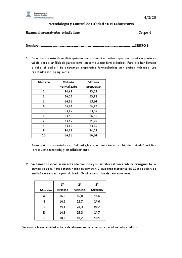 He publicado nuevos examenes de 4º Metodología y Control de Calidad en el Laboratorio: Examen-A1-Febrero-2021.xlsx