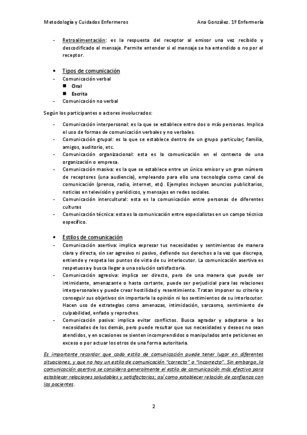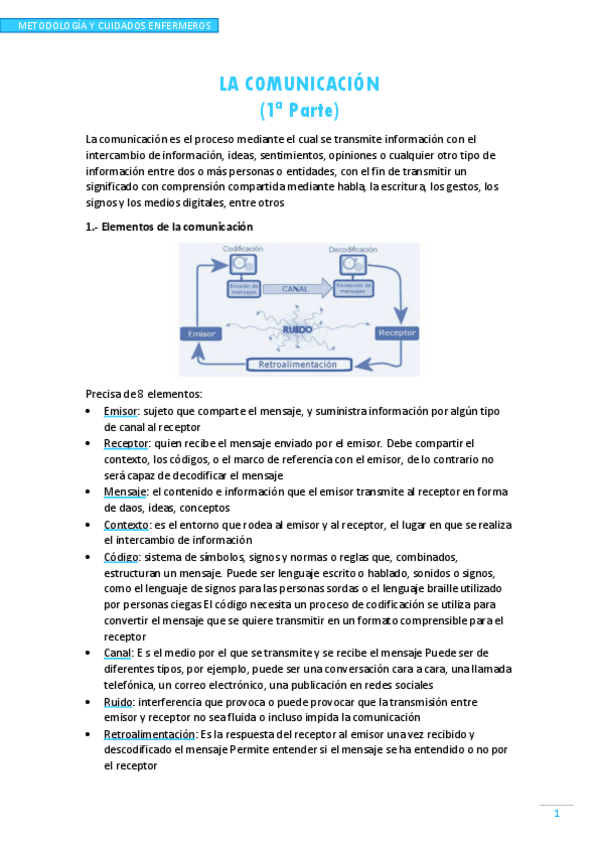 He publicado nuevos apuntes de 1º Metodologia y Cuidados Enfermeros: Metodología - La comunicación