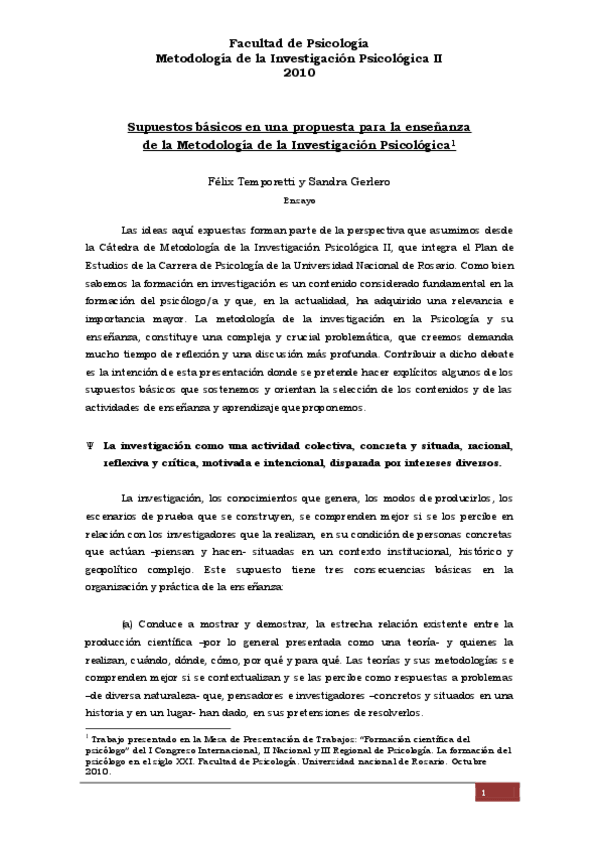 He publicado nuevos apuntes de 6º Metodologías de la Investigación en Psicología: Temporetti-Gerlero-Supuestos-basicos....pdf