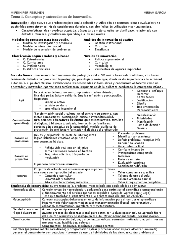 Super resumen esquema de todo el temario de MIPEI, más o menos una cara por tema.
