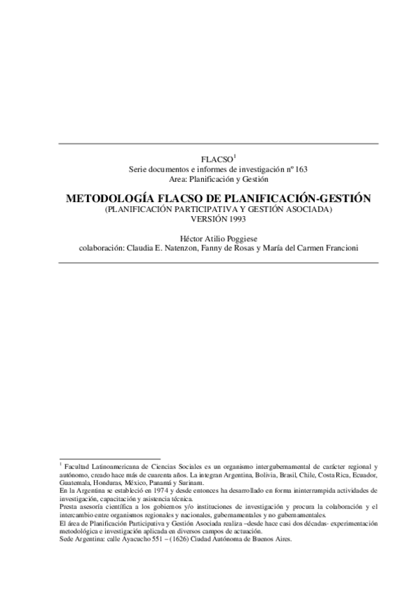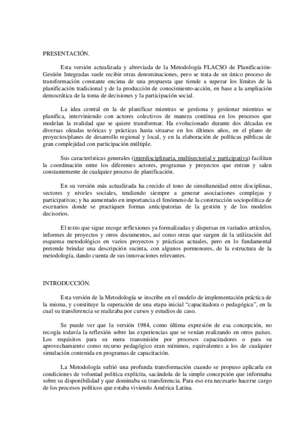 He publicado nuevos apuntes de 3º Metodologías para la Planeación: Metodologia.FLACSO.de.planificacion.gestion.pdf