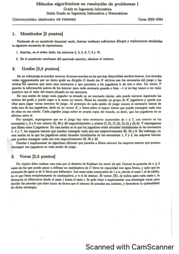 He publicado nuevos examenes de 3º Métodos Algorítmicos en Resolución de Problemas I: Examen-Enero-2024.pdf