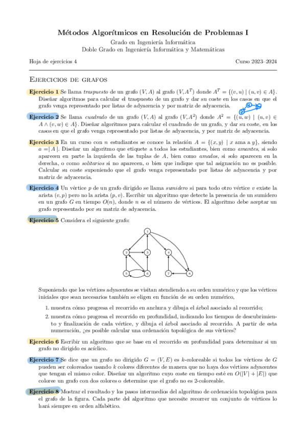 He publicado nuevos apuntes de 3º Métodos Algorítmicos en Resolución de Problemas I: hoja-4-grafos-con-soluciones.pdf