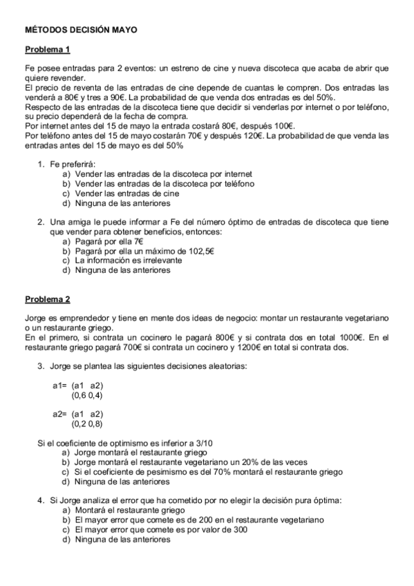 He publicado nuevos examenes de 2º Métodos de Decisión Aplicados al Marketing: EXAMEN-1-METODOS-MAYO-2019-ROCIO.pdf