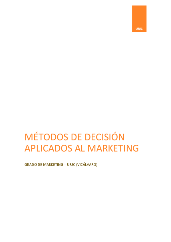 He publicado nuevos apuntes de 2º Métodos de Decisión Aplicados al Marketing: Temas-7-8 Métodos de decisión Marketing.pdf