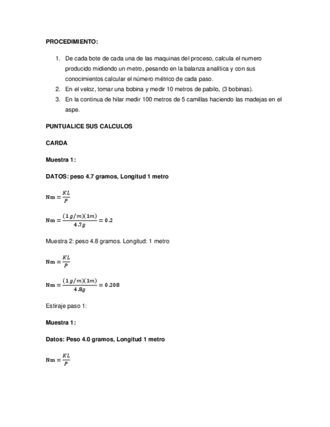 He publicado nuevos apuntes de 1º Métodos de hilados: NUMERACION-METRICA-RELACION-ENTRE-PESO-Y-LONGITUD.pdf