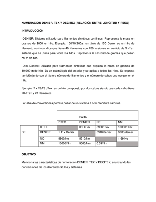 He publicado nuevos apuntes de 1º Métodos de hilados: NUMERACION-DENIER-TEX-Y-DECITEX-RELACION-ENTRE-LONGITUD-Y-PESO.pdf