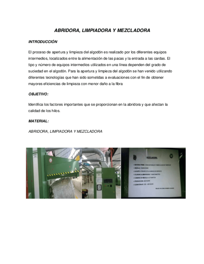 He publicado nuevos apuntes de 1º Métodos de hilados: ABRIDORA-LIMPIADORA-Y-MEZCLADORA.pdf