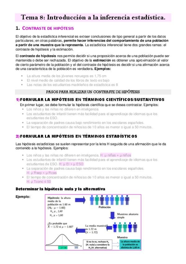 1º Magisterio Ed. Primaria. Métodos de Investigación Educativa. Bloque 10/Tema 10: Inferencia. Contraste de Hipótesis.