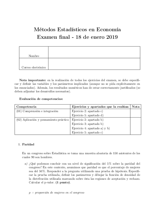 Exámenes Métodos Estadísticos Economía
