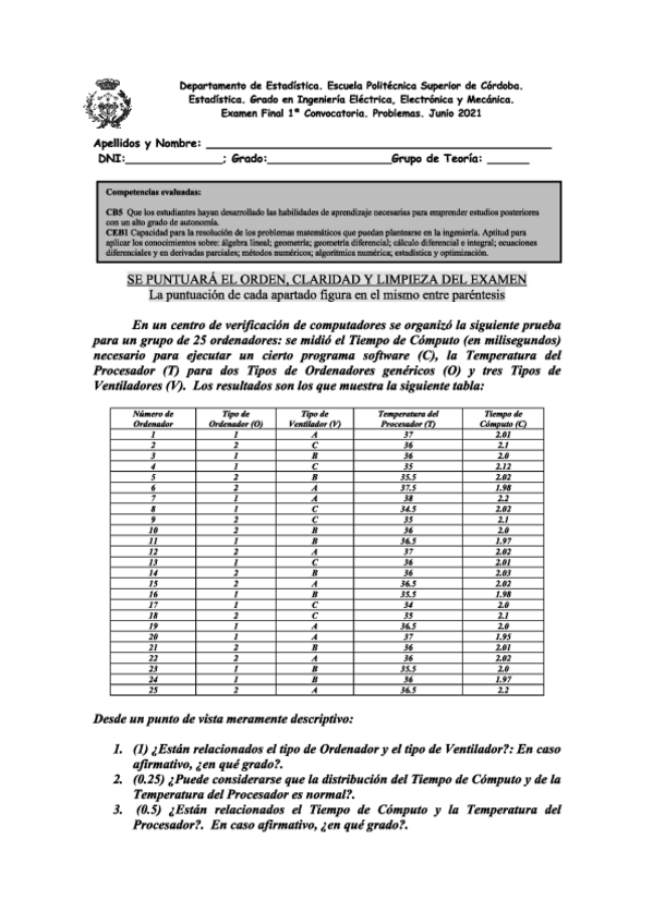 He publicado nuevos examenes de 1º Métodos Estadísticos en la Ingeniería: Examen-junio-2021.pdf