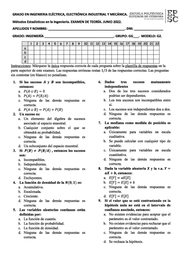 He publicado nuevos examenes de 1º Métodos Estadísticos en la Ingeniería: Examen-junio-2022.pdf