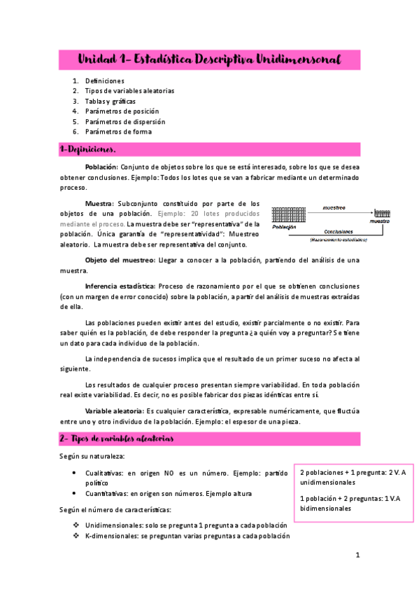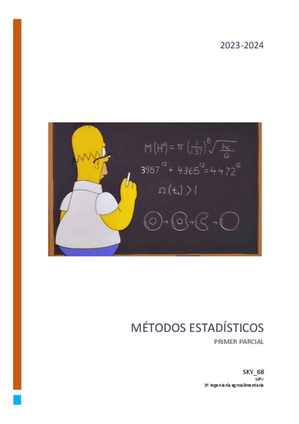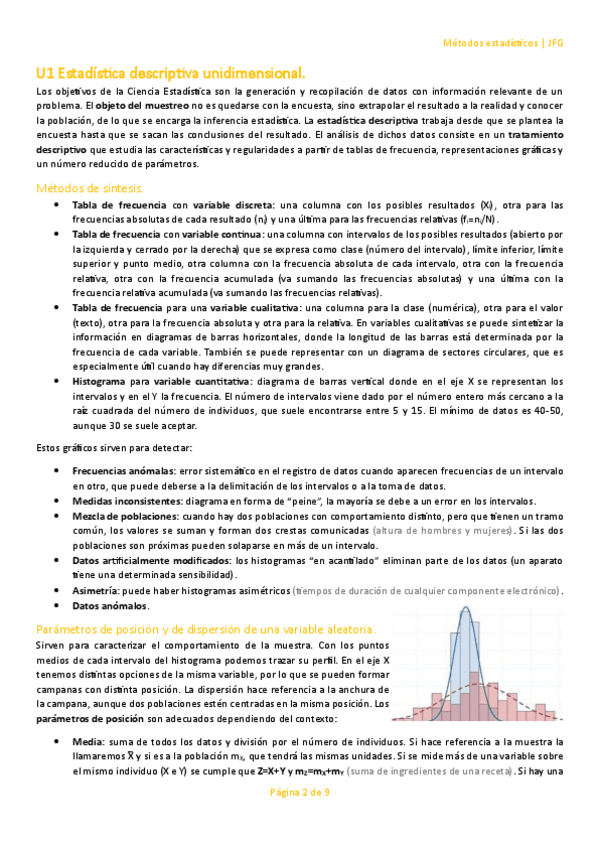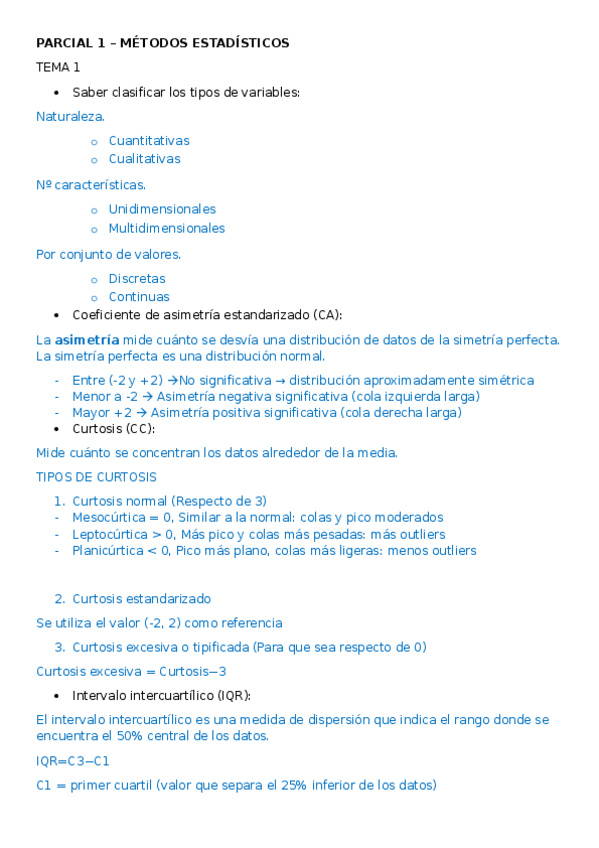 Aquí os dejo la teoría que entra para el primer parcial de métodos estadísticos. La profesora corrige fatal, ser muy claros con las explicaciones.