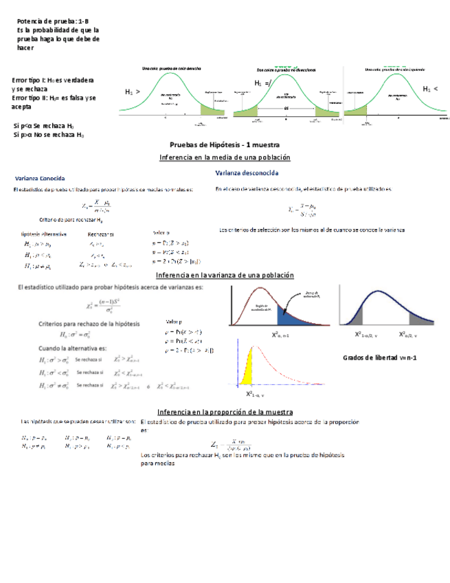 Formulario de Métodos Inferenciales de pruebas de hipótesis de una y dos muestras