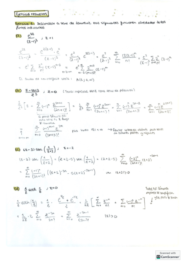 Incluye series de Taylor complejas y series de Laurent. Ambas con varios ejemplos. Espero les sea de utilidad:)