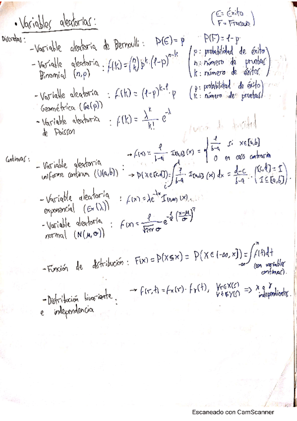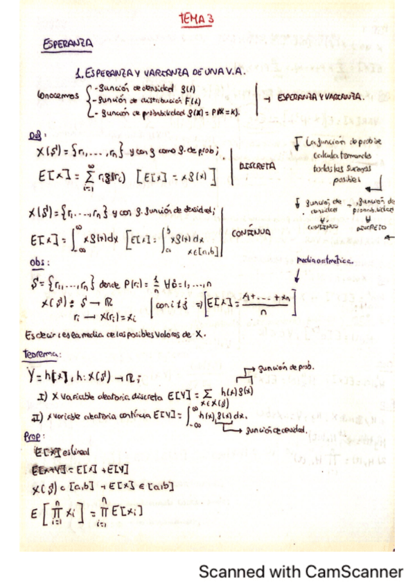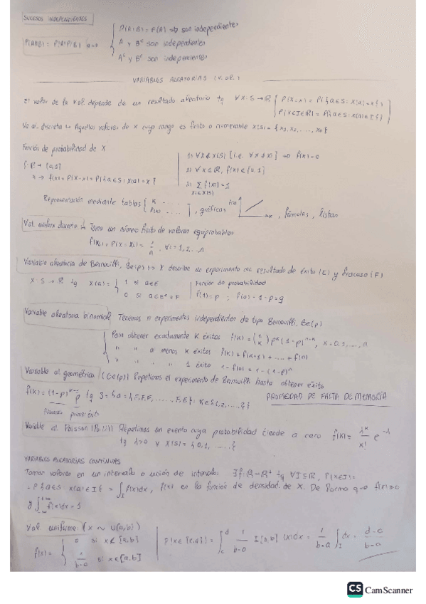 Apuntes de clase de la parte de probabilidad dados por Juan Carlos, el mejor profesor de matemáticas que he tenido en la facultad.