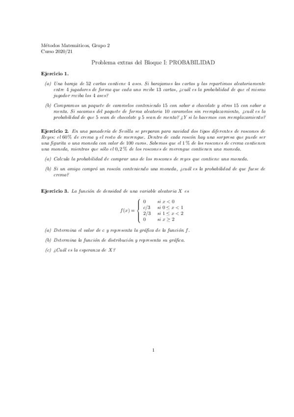 He publicado nuevos ejercicios de 1º Métodos Matemáticos I: Ejercicios-tema-2-probabilidad.pdf
