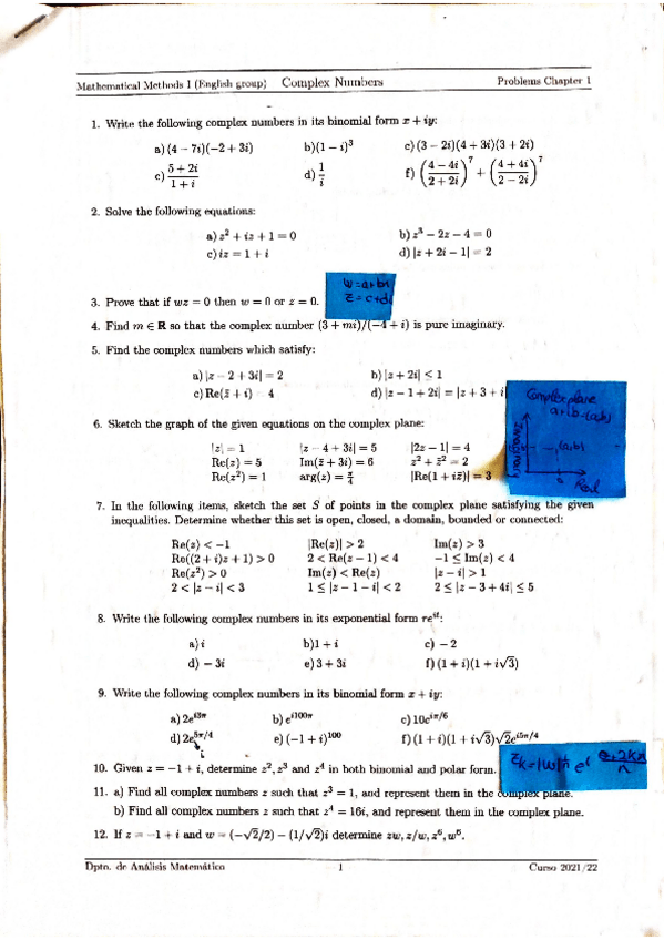 He publicado nuevos apuntes de 1º Métodos Matemáticos I: EJERCICIOS DE NÚMEROS COMPLEJOS HECHOS EN CLASE