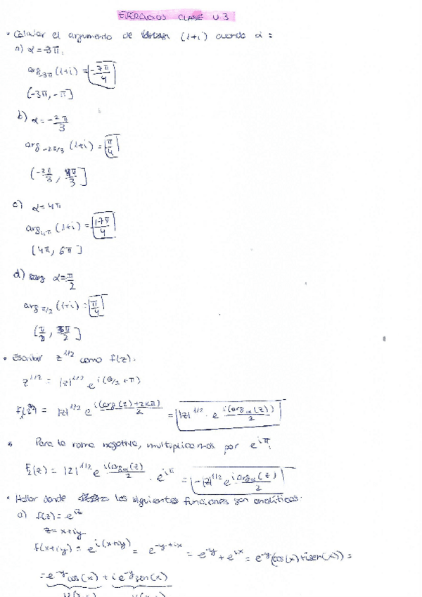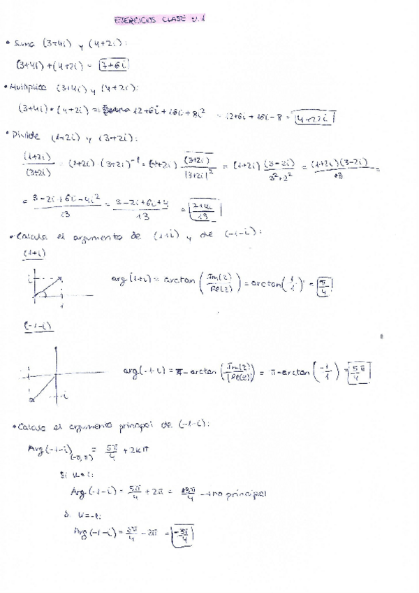 EJERCICIOS DE NÚMEROS COMPLEJOS HECHOS EN CLASE