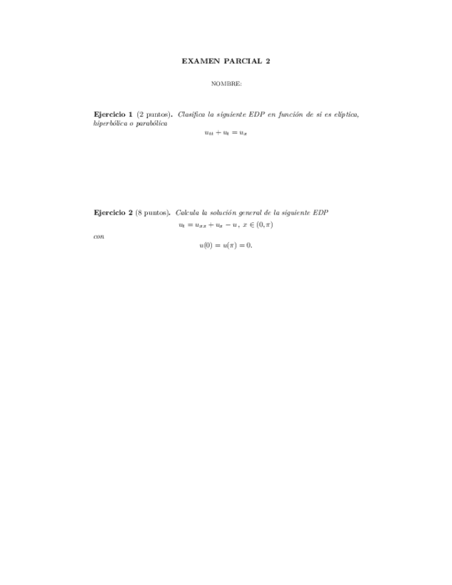 He publicado nuevos apuntes de 2º Métodos Matemáticos II: Ecuaciones Derivadas Parciales: examenes
