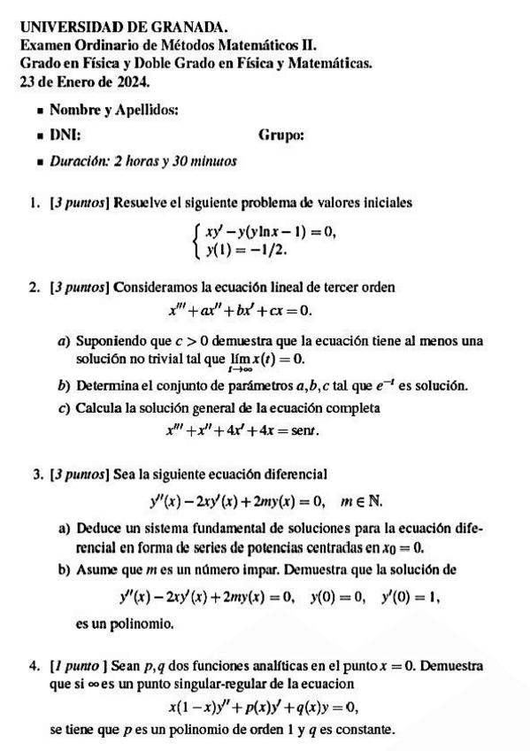 He publicado nuevos examenes de 2º Métodos Matemáticos II: examen-MMII-enero2024-soluciones.pdf