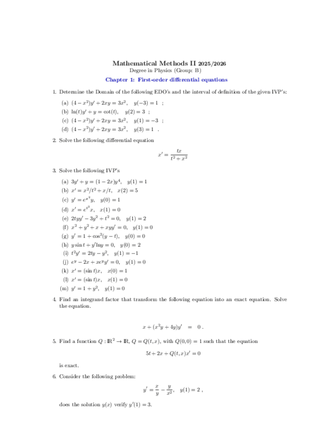 He publicado nuevos ejercicios de 2º Métodos Matemáticos II: Relación 1 - EDOs 1er orden (explicados).pdf