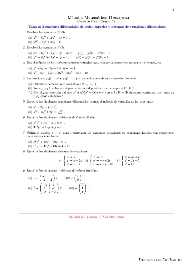 He publicado nuevos ejercicios de 2º Métodos Matemáticos II: Relación 2 - Orden superior y sistemas (explicados).pdf
