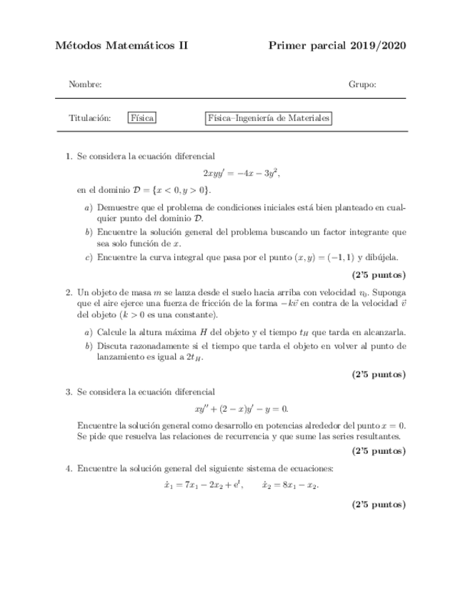 He publicado nuevos examenes de 2º Métodos Matemáticos II: Segundo-Parcial-2025.pdf