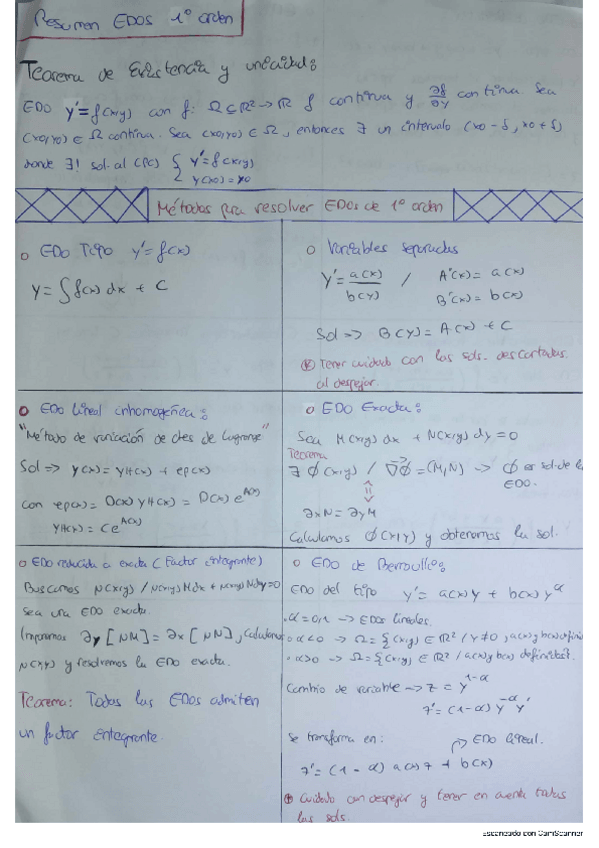 Resumen de EDO de todo el primer cuatrimestre, suficiente y necesario para cubrir la parte teórica de la asignatura