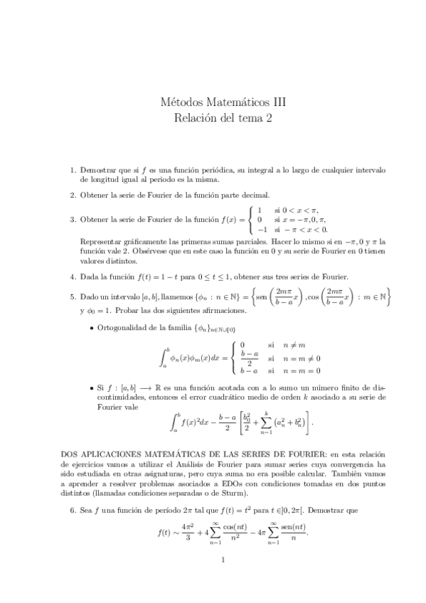 He publicado nuevos ejercicios de 2º Metodos Matematicos Iii: Relacion-tema2.pdf