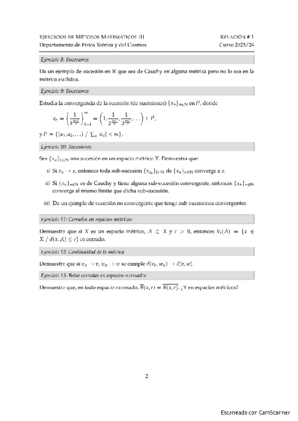 He publicado nuevos ejercicios de 2º Metodos Matematicos Iii: Relación 1 - Espacios normados y de Banach.pdf