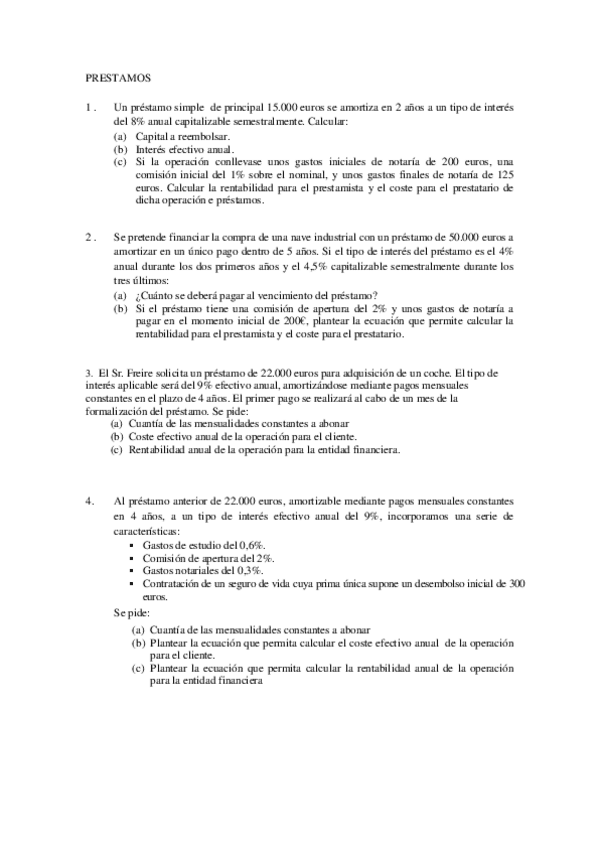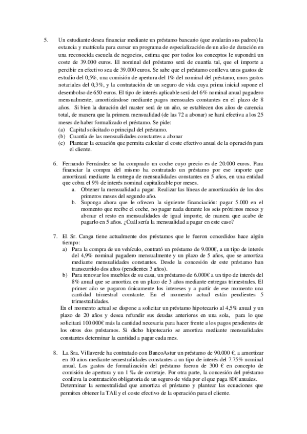 He publicado nuevos ejercicios de 2º Métodos Matemáticos y Financieros de la Decisión: problemas-prestamos.pdf