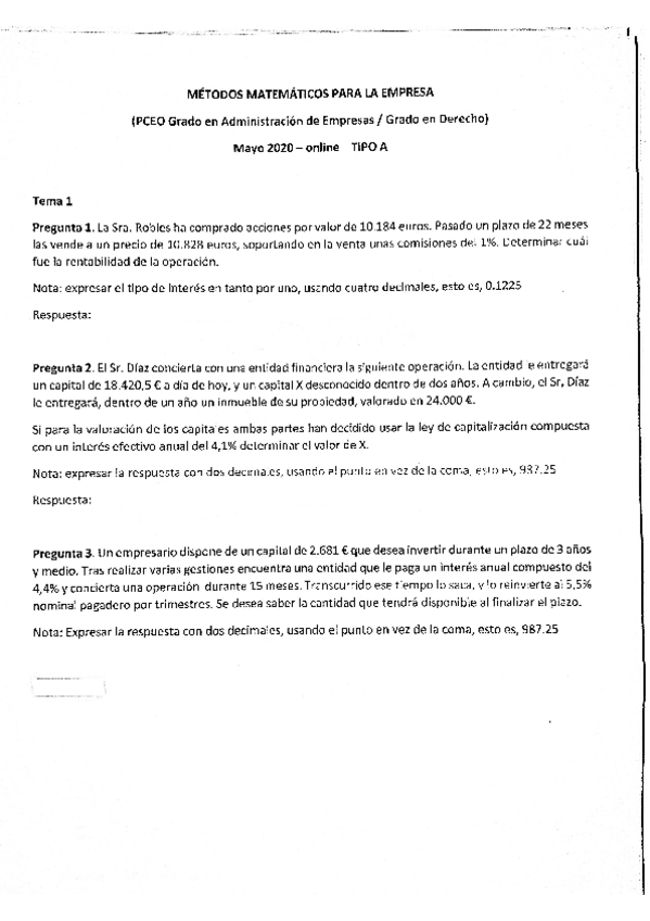 He publicado nuevos examenes de 2º Métodos Matemáticos y Financieros de la Decisión: Enunciados-examenes.pdf