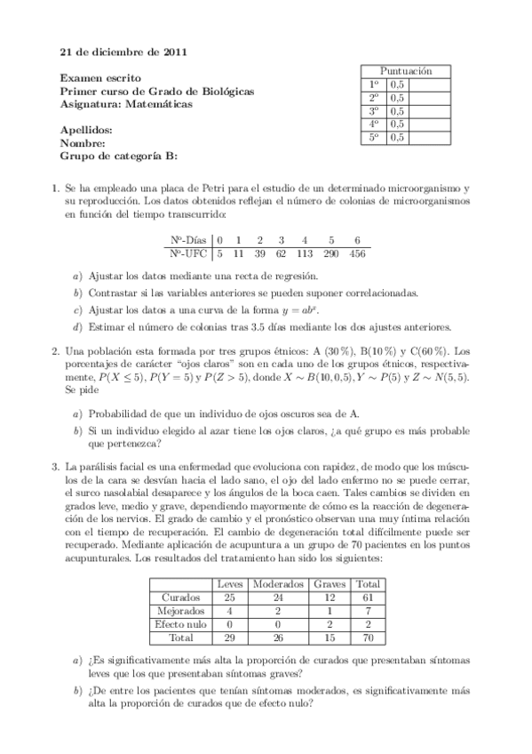 He publicado nuevos examenes de 1º Métodos numéricos y estadísticos: Exámenes