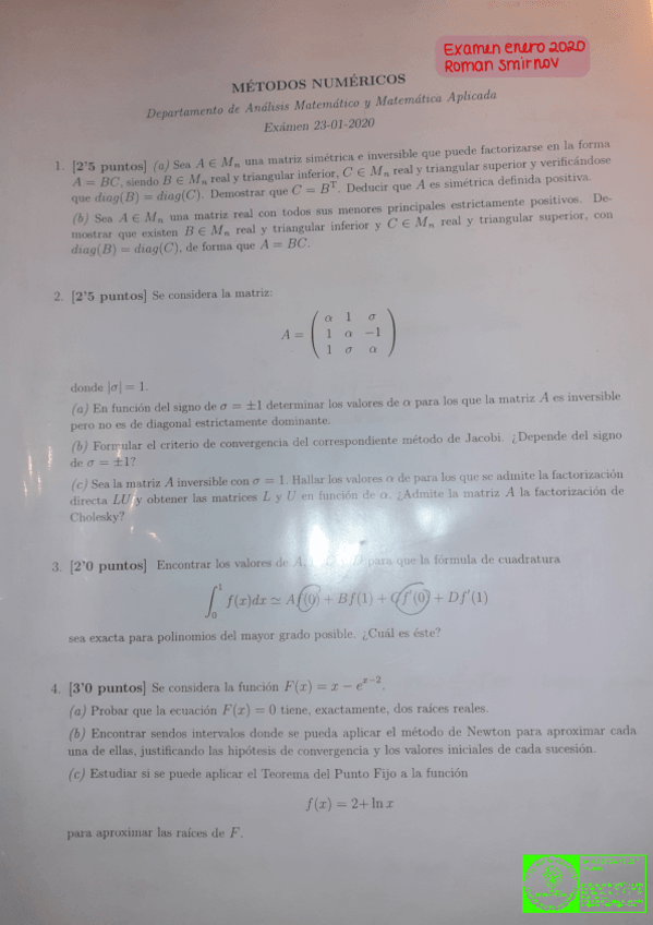 He publicado nuevos examenes de 2º Métodos Numéricos: Enero 2020 RESUELTO. Roman Smirnov.pdf