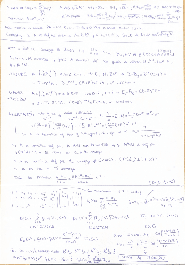 Resumen para Examen final de Métodos Numéricos con todos los contenidos de la asignatura