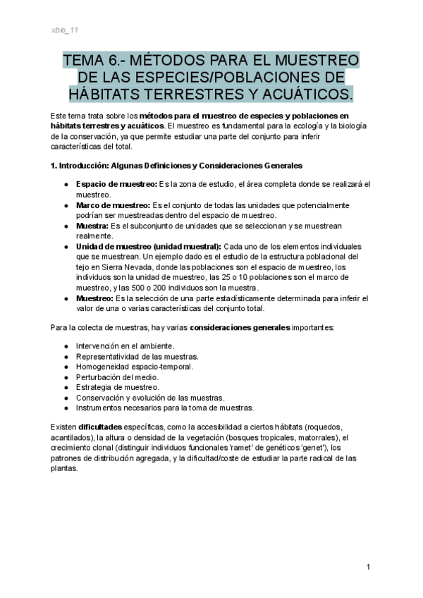 He publicado nuevos apuntes de 1º Métodos Para el Estudio del Medio Natural: TEMA-6-METODOS-PARA-EL-MUESTREO-DE-LAS-ESPECIES-O-POBLACIONES-DE-HABITATS-TERRESTRES-Y-ACUATICOS.pdf