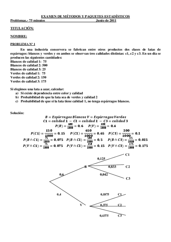 He publicado nuevos examenes de 1º Métodos y Paquetes Estadísticos: Examen Junio 2011.pdf