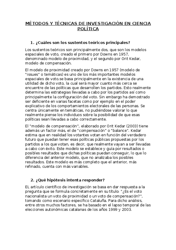 Apuntes Métodos y técnicas de investigación en Ciencia Política José Antonio Peña Ramos