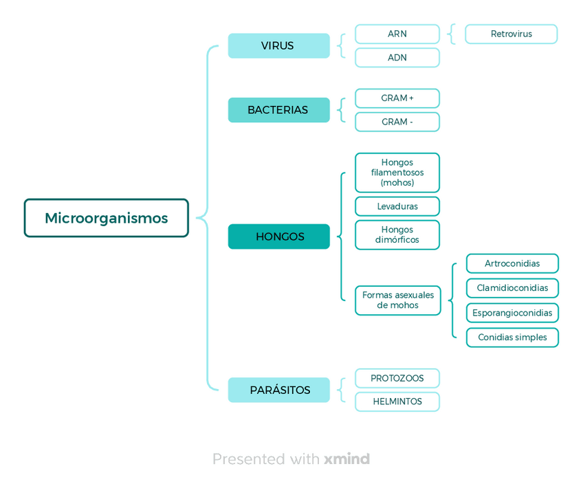 esquema bacterias, virus y hongos