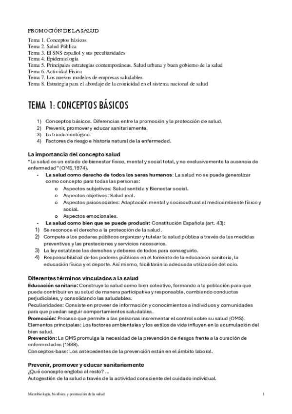 He publicado nuevos apuntes de 1º Microbiologia, biofisica y promocion de la salud: Promoción de la salud