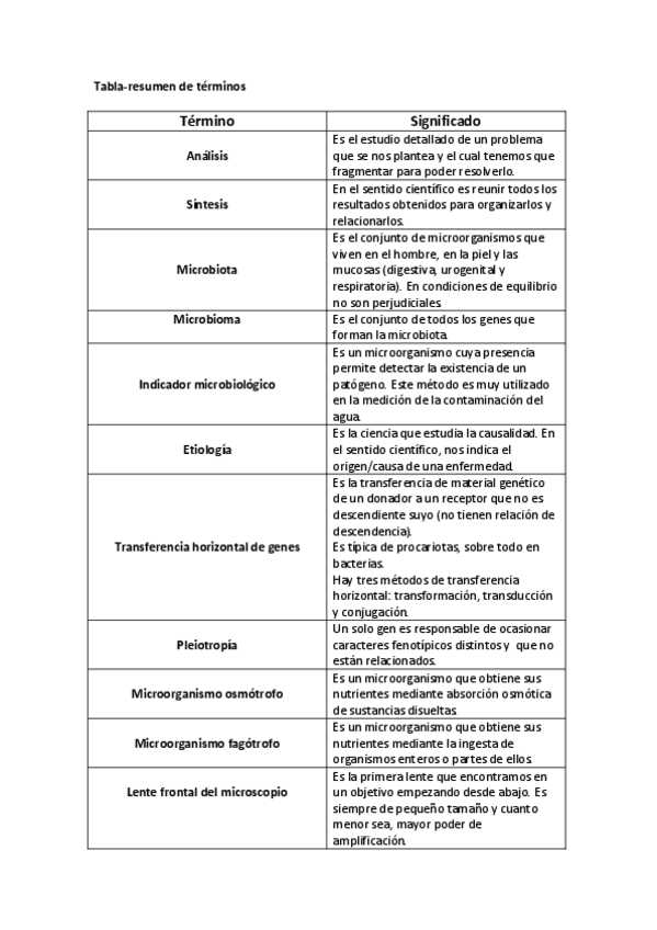 He publicado nuevos apuntes de 3º MICROBIOLOGÍA BIOTECNOLÓGICA Y BIOSANITARIA: Tabla-Terminos.pdf