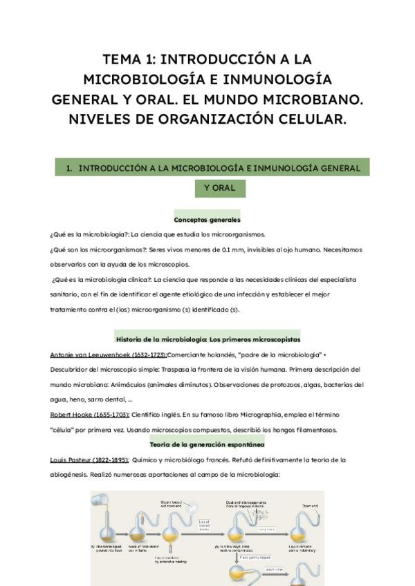 Apuntes microbiología tema 1: introducción a la microbiología e inmunología general y oral.