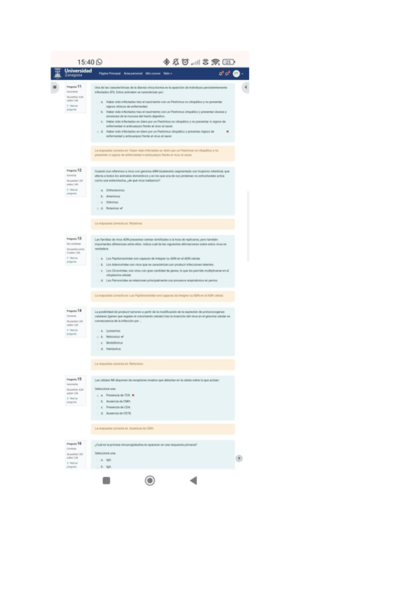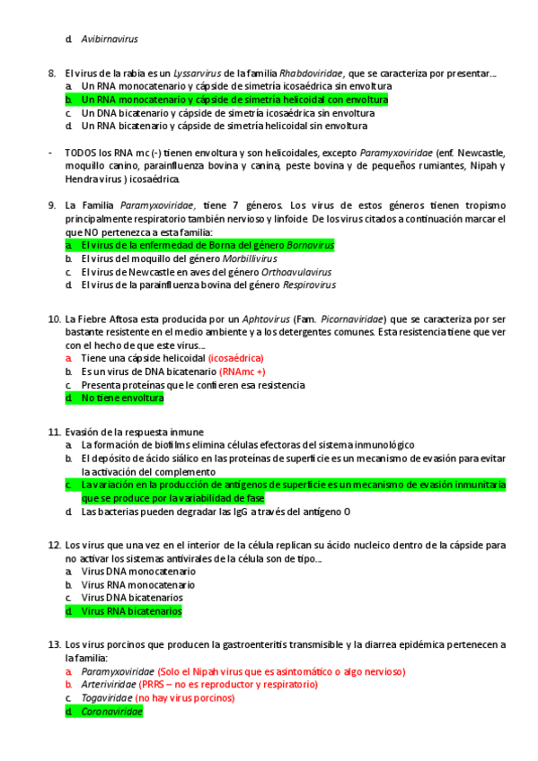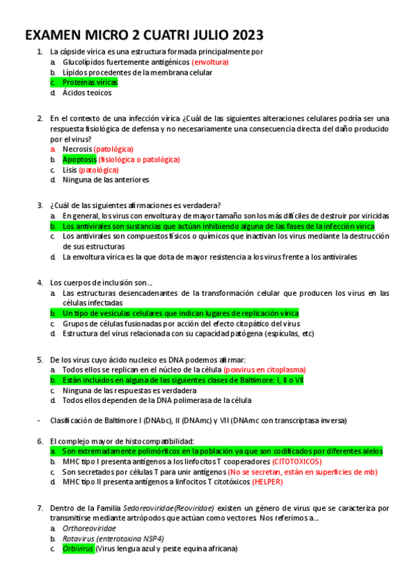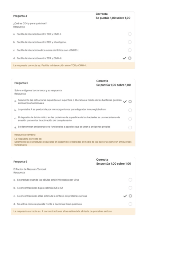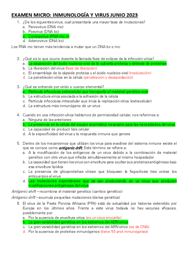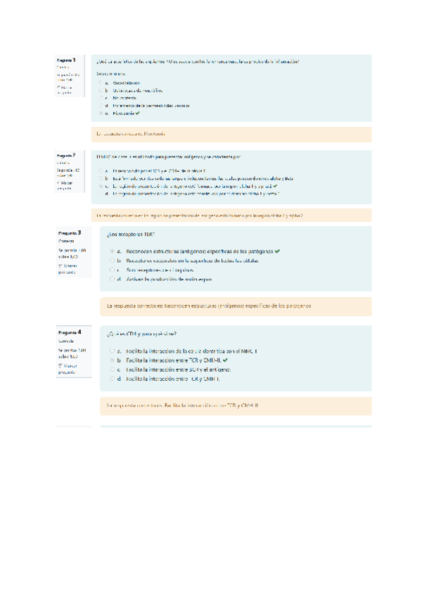 Este documento te ayudará sobre todo para el examen teorico que se hace por moodle del 2o Cuatrimestre de Microbiología e Inmunología. Estas preguntas son sobre Virología e Inmunologia y tienen los resultados tras cada pregunta.