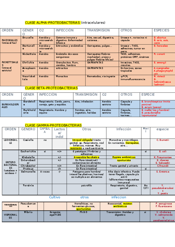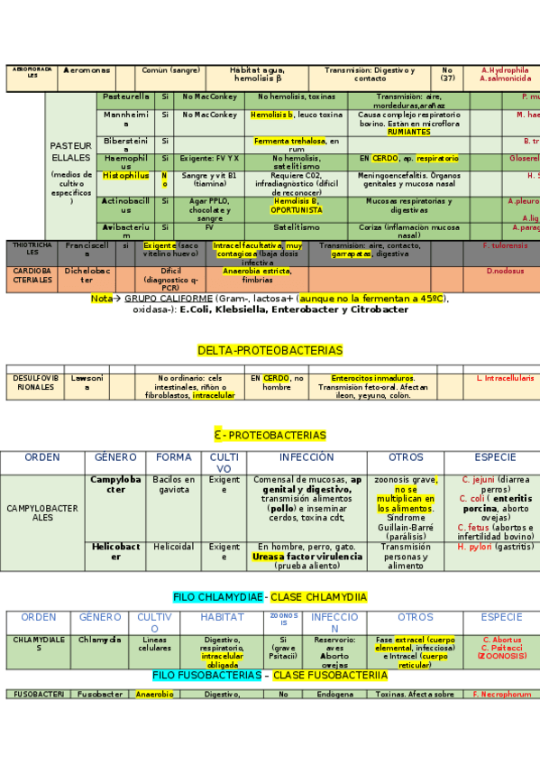 Tablas con la información más importante de cada bacteria (Gram -)