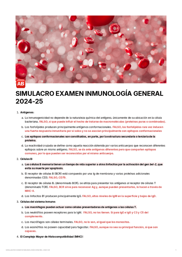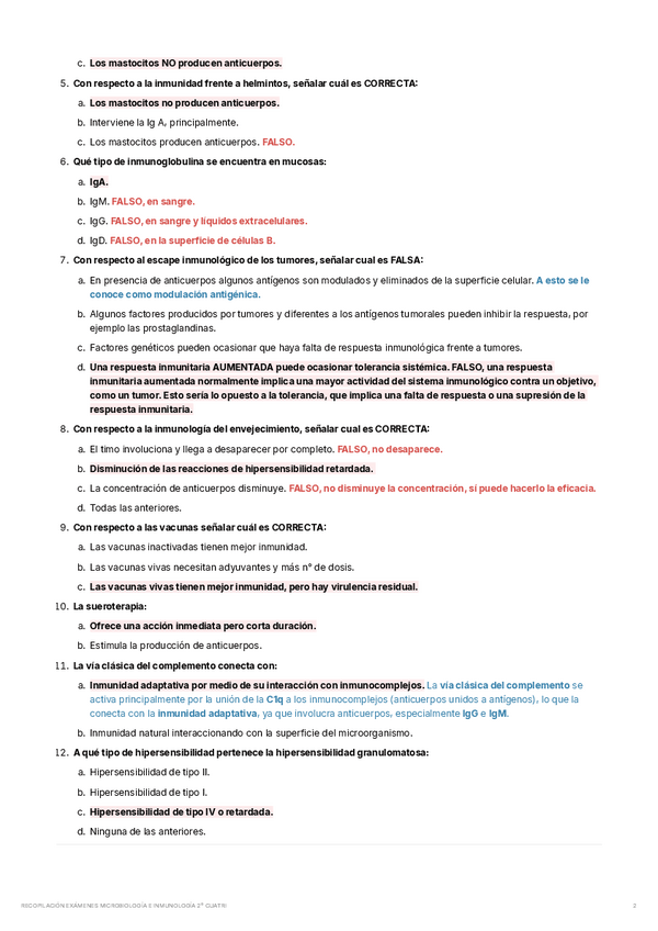 Este documento te ayudará a practicar la Inmunología del 2o cuatrimestre de Microbiología e Inmunología. Este es el test que me toco a mi, puede que a ti te toque alguna de estas preguntas. Mucho animo!