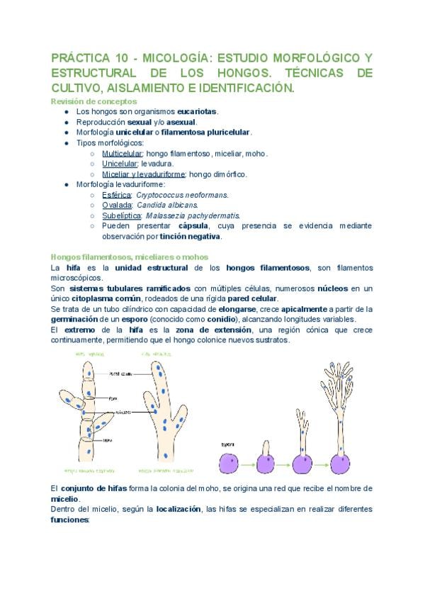Práctica 10 - Micología. Estudio morfológico y funcional de los hongos. Técnicas de cultivo, aislamiento e identificación.